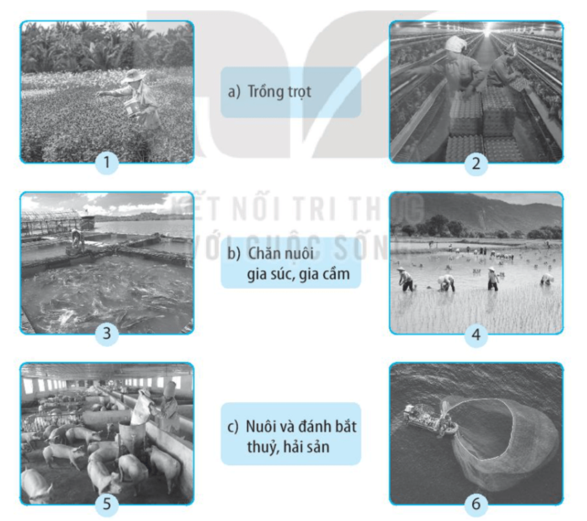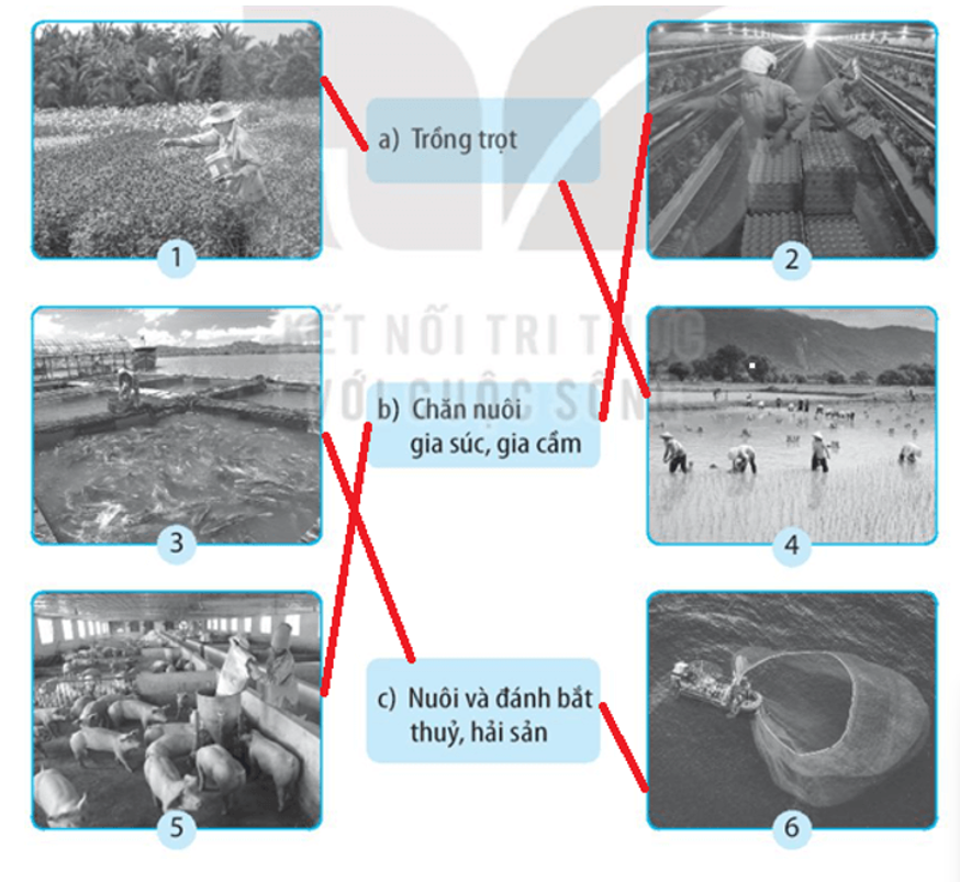 Nối các hình ảnh sau với tên của hoạt động sản xuất nông nghiệp cho phù hợp.