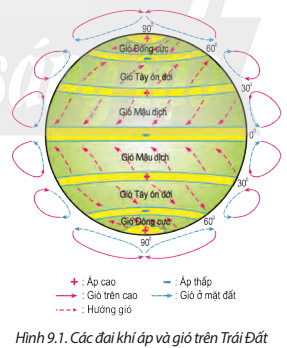 Dựa vào hình 9.1 trong SGK, em hãy viết một đoạn văn ngắn mô tả nguyên nhân hình thành các đai khí áp trên Trái Đất