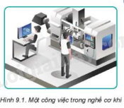 Quan sát Hình 9.1 và cho biết: Người công nhân đang làm công việc gì trong nghề cơ khí? Em có nhận xét gì về đặc điểm của nghề đó?