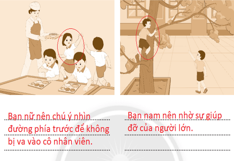 Khoanh vào hình bạn sẽ gặp nguy hiểm trong mỗi hình sau. Viết vào chỗ (…) lời khuyên của em dành cho bạn.