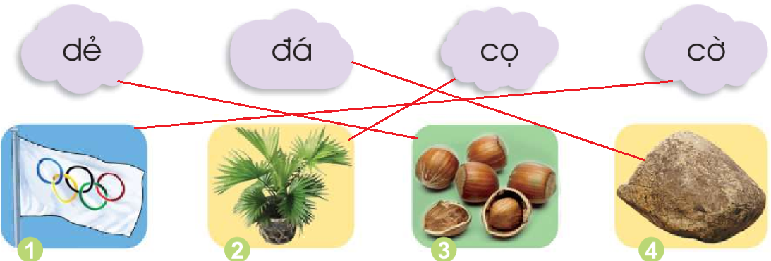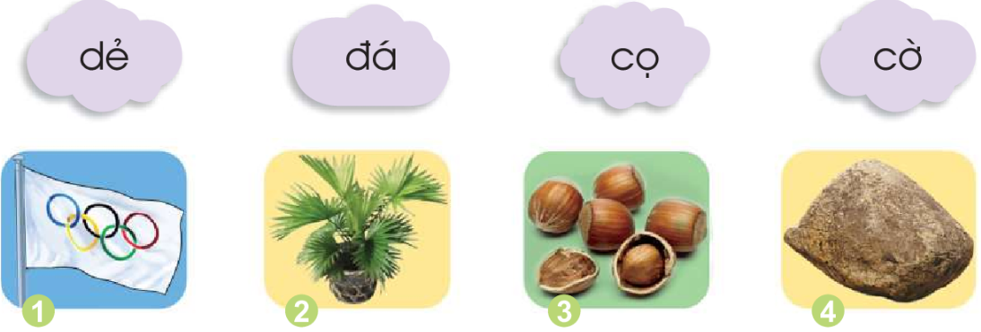 Ghép các âm đã học thành tiếng. Thêm các thanh đã học vào mỗi tiếng trên để tạo tiếng mới. Tìm từ ứng với hình.