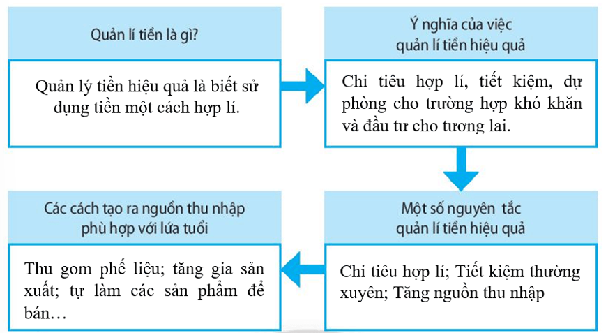 Em hãy hoàn thiện sơ đồ sau để khái quát về bài học quản lí tiền.