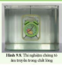 | Trong thí nghiệm ở hình 9.8, âm do đồng hồ phát ra đã truyền đến tai ta qua những chất nào? |
