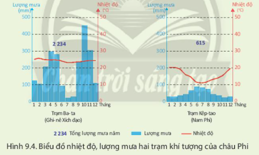 a. Dựa vào hình 9.2, cho biết hai trạm khí tượng trên thuộc đới khí hậu nào?