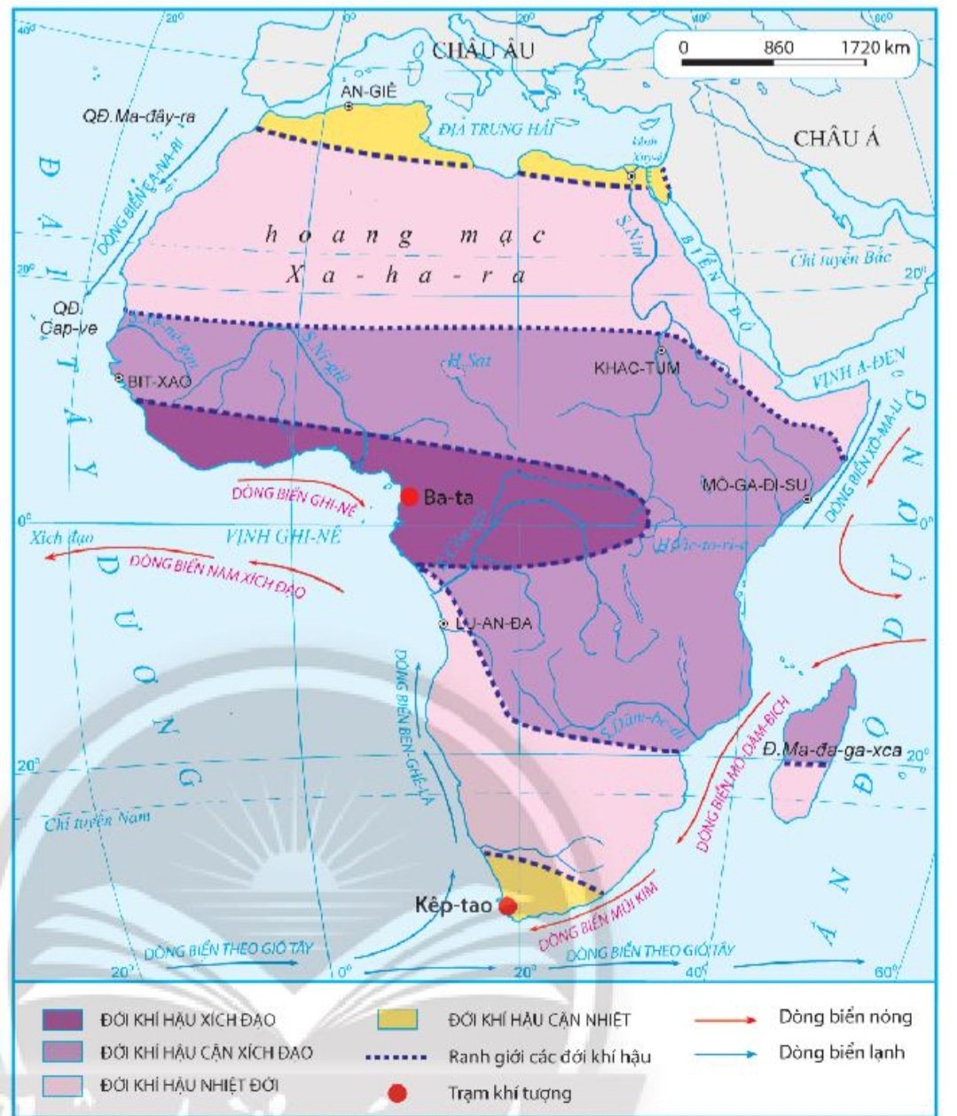Hình 9.2. Bản đồ khí hậu châu Phi