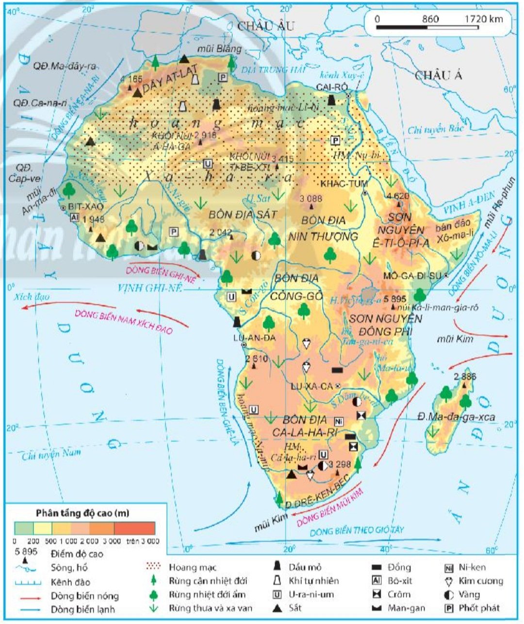 - Cho biết sự phân bố các loại khoáng sản chính ở châu Phi.