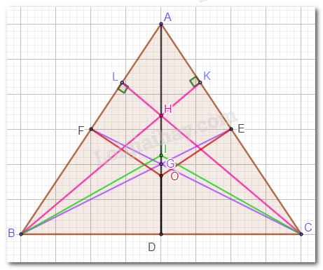 Vậy nếu tam giác ABC cân tại A thì các điểm A, G, H, I, O cùng nằm trên một đường thẳng.