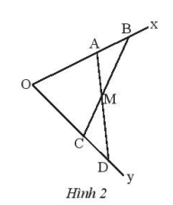 Cho góc xOy. Lấy hai điểm A, B thuộc tia Ox sao cho OA < OB. Lấy hai điểm C, D thuộc tia Oy sao cho OA = OC, OB = OD. Gọi M là giao điểm của AD và CB. Chứng minh rằng: