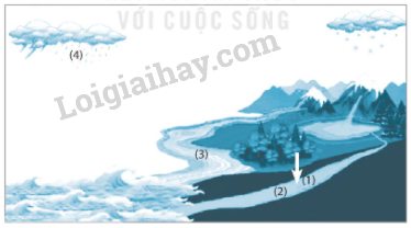 Hãy chú thích cho hình sau bằng cách điền các cụm từ: "tầng nước ngầm, ngấm, mưa, dòng chảy mặt".