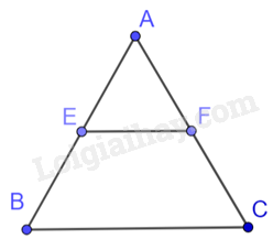 Tam giác ABC có E, F lần lượt là trung điểm của AB, AC nên theo hệ quả định lí Thalès ta có: \(EF = \frac{1}{2}BC = 0,5dm\)
