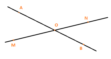 Gọi hai đường thẳng lần lượt là AB và MN, cắt nhau tại điểm O như hình dưới