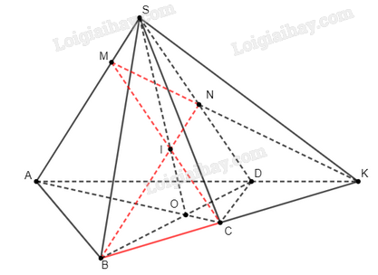 Do \(AD \in \left( {SAD} \right)\), \(BC \in \left( {IBC} \right)\), \(\left\{ K \right\} = AD \cap BC\), ta suy ra \(K\) nằm trên giao tuyến của \(\left( {SAD} \right)\) và \(\left( {IBC} \right)\), tức là \(K \in MN\).