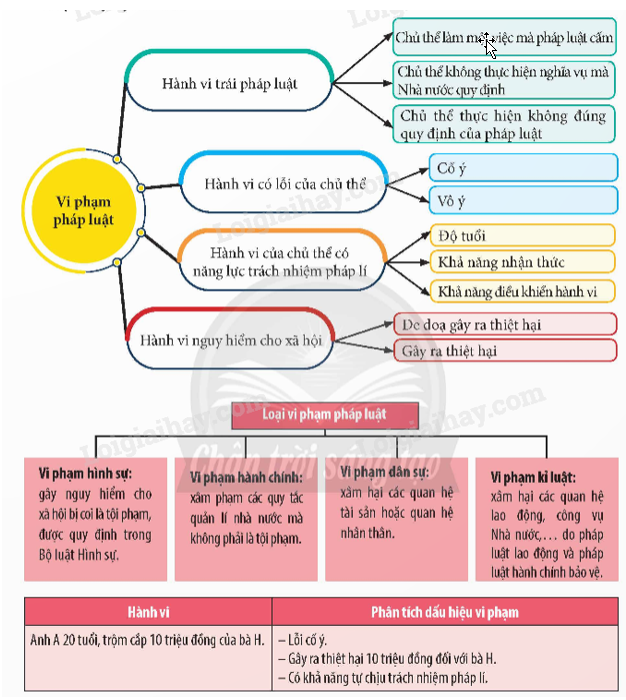 Em hãy xác định dấu hiệu vi phạm, loại vi phạm và trách nhiệm pháp lí tương ứng với các trường hợp dưới đây: