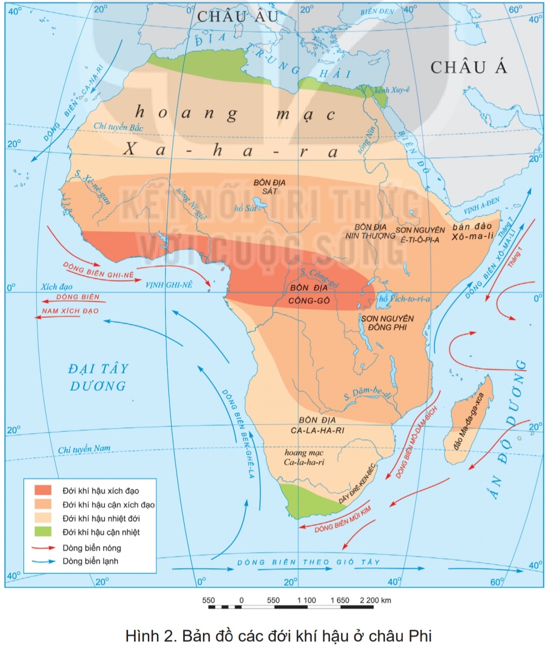 Dựa vào thông tin trong mục b và hình 2, hãy cho biết các đặc điểm nổi bật của khí hậu châu Phi.