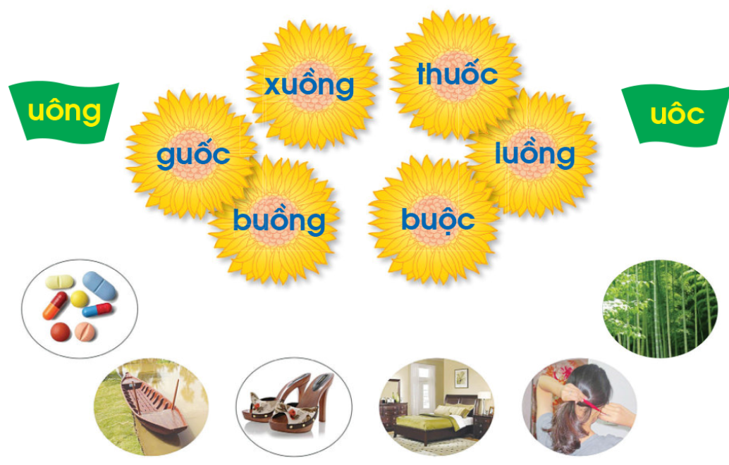 Bông hoa chứa tiếng có vần uôc là: guốc, thuốc, buộc