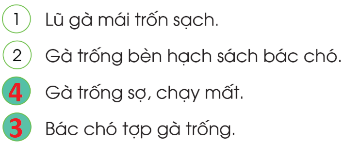 Tập đọc: Chú gà quan trọng (2). Sắp xếp các ý theo đúng nội dung. Tìm chữ thích hợp với chỗ trống (ng hay ngh) rồi chép lại câu sau