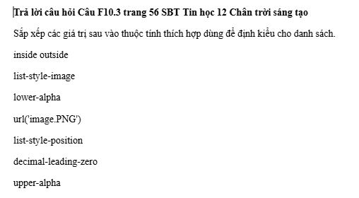 Bài F10. Định kiểu CSS cho siêu liên kết và danh sách SBT Tin học 12 Chân trời sáng tạo>