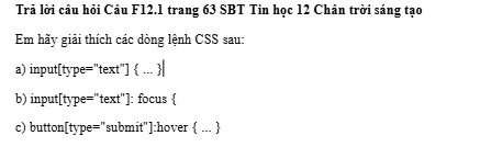 Bài F12. Định kiểu CSS cho biểu mẫu SBT Tin học 12 Chân trời sáng tạo>