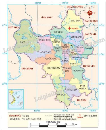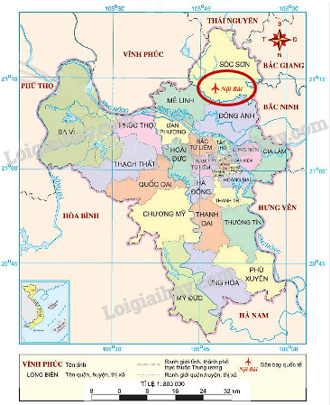 - Hãy xác định vị trí của sân bay Nội Bài.