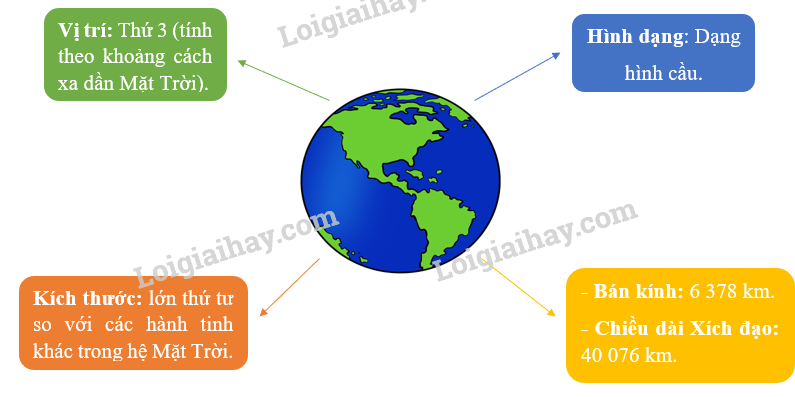 Hãy lập sơ đồ hệ thống hóa kiến thức về hình dạng, kích thước và vị trí của Trái Đất trong hệ Mặt Trời.