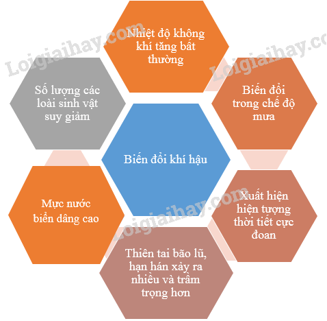 Em hãy lập sơ đồ các biểu hiện của biến đổi khí hậu.