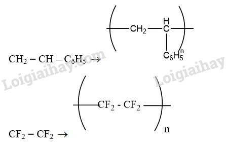 Viết phương trình hóa học của phản ứng trùng hợp CH2 = CH – C6H5 để điều chế polystyrene và trùng hợp CF2 = CF2 để điều chế poly(tetrafloroethylene).