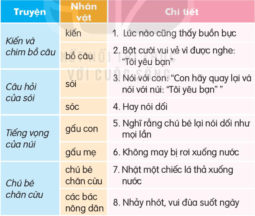 Em nhớ lại các truyện đã học để hoàn thành bài tập.