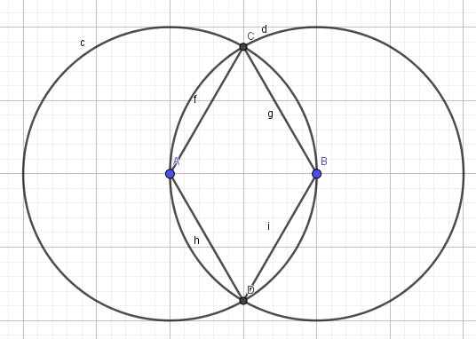- Chọn nhóm công cụ Điểm → Chọn Giao điểm của 2 đối tượng → Nháy chuột vào đường tròn thứ nhất → Nháy chuột vào đường tròn thứ hai, ta được điểm C, D.