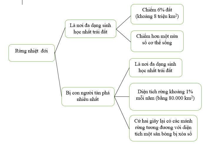- Số liệu“6% đất (khoảng 8 triệu km2)”,“hơn một nửa số cơ thể sống” được biết tới làm nổi bật sự đa dạng sinh học của rừng nhiệt đới.