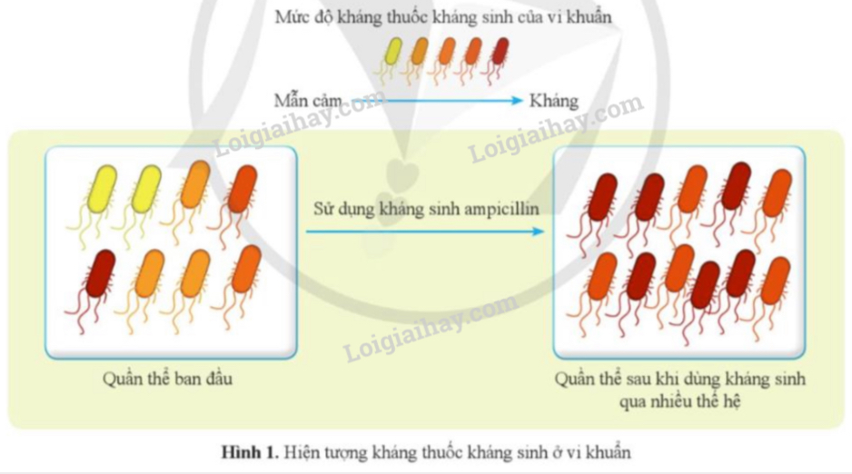 b) Khi ở trong môi trường có thuốc kháng sinh, chọn lọc then nhiên sẽ phân hóa khả năng sinh sản và sống sót của vi khuẩn → giữ lại các cá thể thích nghi với việc sống trong môi trường có kháng sinh (kháng kháng sinh).