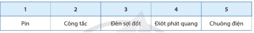 Một số thiết bị điện có tên tương ứng với các số như bảng dưới đây.
