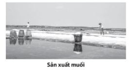 Hình bên minh hoạ về việc sản xuất và thu hoạch muối. Để sản xuất muối, người ta cho nước biển vào các ruộng muối rối phơi khoảng 1 tuần thì thu được muối ở dạng rắn.