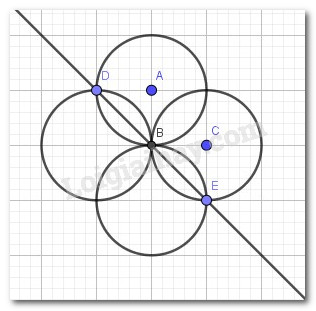 + Nháy chuột trái vào đường tròn tâm A ---> Nháy chuột trái vào đoạn thẳng DB, ta được đường tròn đối xứng với đường tròn tâm A qua DE.