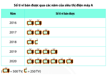 Biểu đồ tranh dưới đây cho biết số ti vi (TV) bán được qua các năm của 1 siêu thị điện máy.