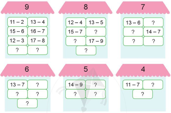 14 – 5 = 9 15 – 6 = 9 11 – 4 = 7 11 – 3 = 8