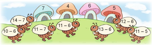 Thực hiện tính nhẩm kết quả các phép tính dựa vào bảng trừ (có nhớ) trong phạm vi 20.