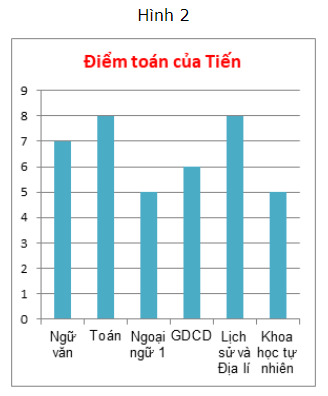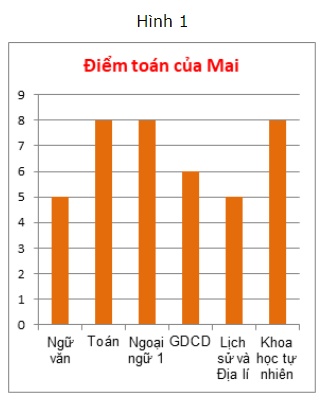 Cho hai biểu đồ cột ở Hình 1 và Hình 2 lần lượt biểu diễn điểm kiểm tra các môn của Mai và Tiến