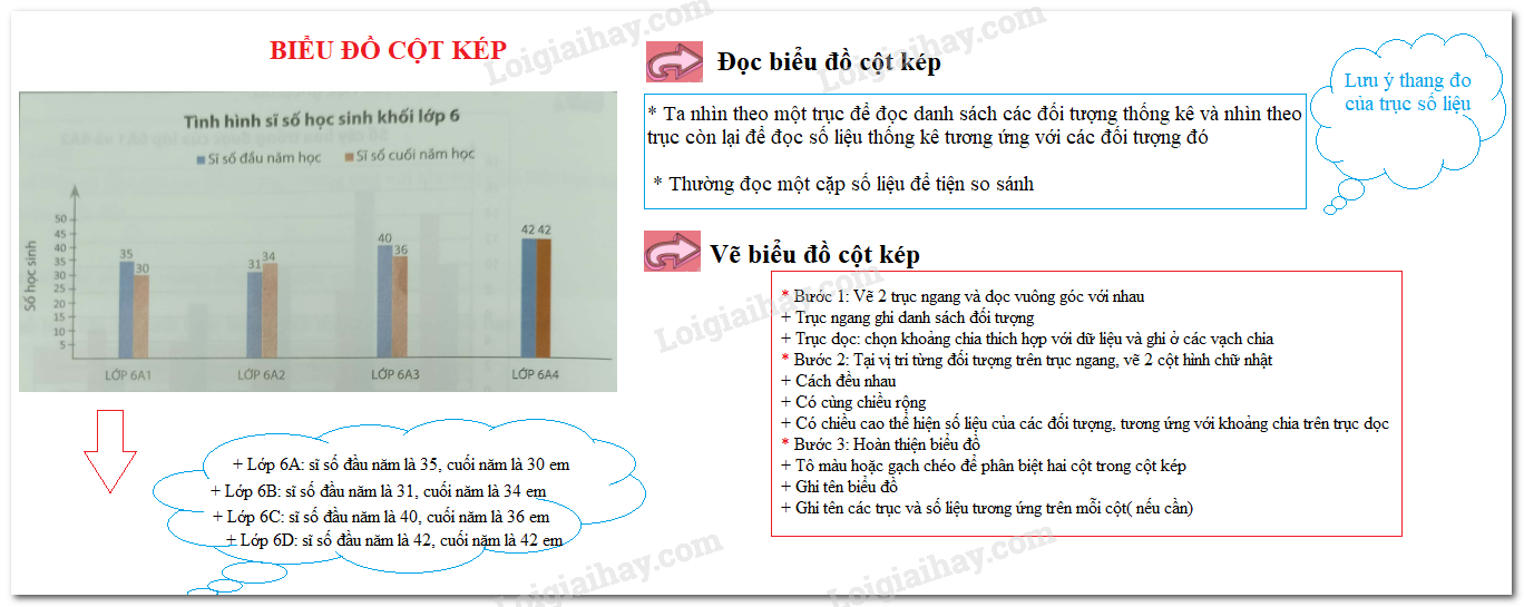 - Biểu đồ cột kép dùng để so sánh từng cặp số liệu của hai bộ dữ liệu cùng loại.