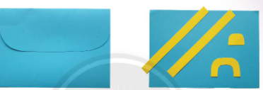 1. Chia giấy thành 3 phần: 2 phần bằng nhau làm thân, 1 phần nhỏ làm nắp cặp (vẽ và cắt theo nét cong của nắp