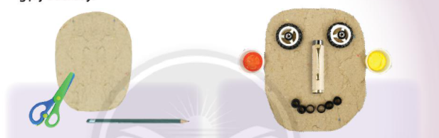 Quan sát và chỉ ra cách tạo hình khuôn mặt từ các vật liệu tìm được theo gợi ý dưới đây