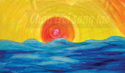 Bước 2: Vẽ hình mặt trời và sóng nước bằng nét màu