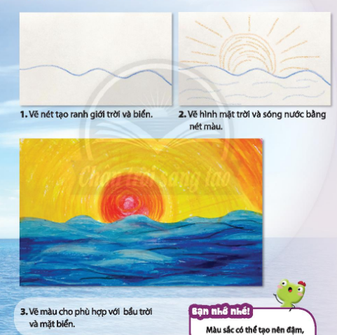 Quan sát và chỉ ra cách vẽ tranh bầu trời và biển