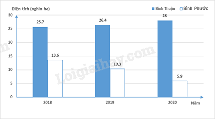 1. Biểu đồ cột kép biểu diễn diện tích gieo trồng sắn của tỉnh Bình Thuận (cũ) và tỉnh Bình Phước (cũ) trong các năm 2018; 2019; 2020 (đơn vị: Nghìn ha).