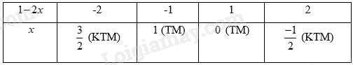 Để A.B nguyên thì \(\frac{2}{{1 - 2x}}\) nguyên hay \(\left( {1 - 2x} \right) \in \)Ư(2) = \(\left\{ { - 2; - 1;1;2} \right\}\).