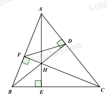 c) Chứng minh \(\frac{{HE}}{{AE}} + \frac{{HD}}{{BD}} + \frac{{HF}}{{CF}} = 1\).