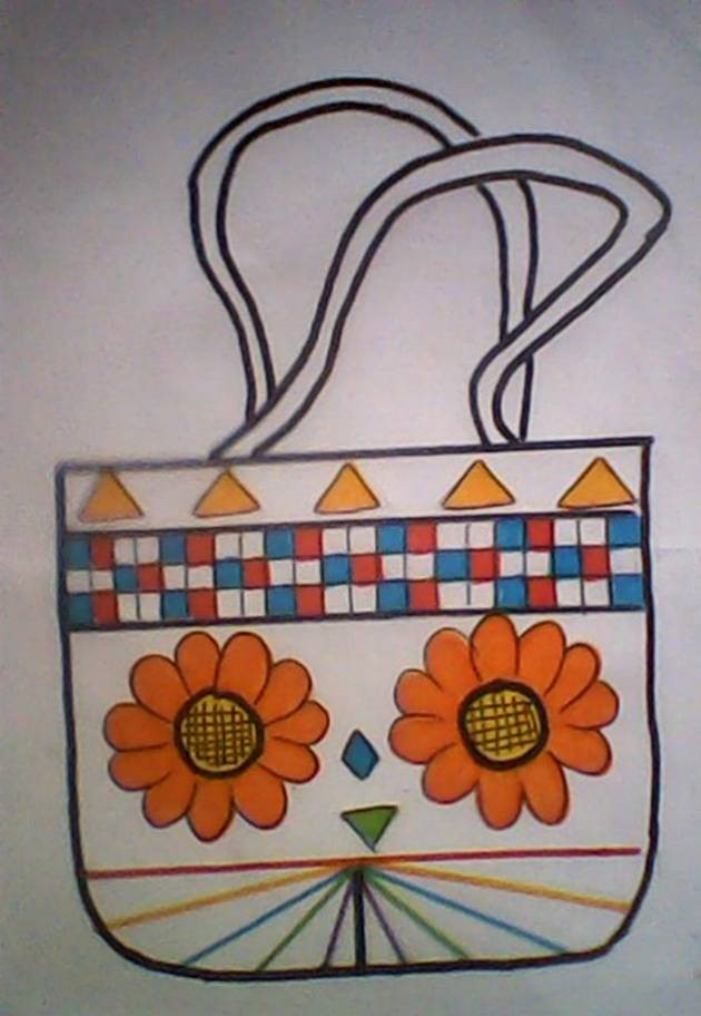 Dùng mắt quan sát những chi tiết, sự vật trong tranh của em và nhận biết những hình cơ bản trong chiếc túi em vẽ