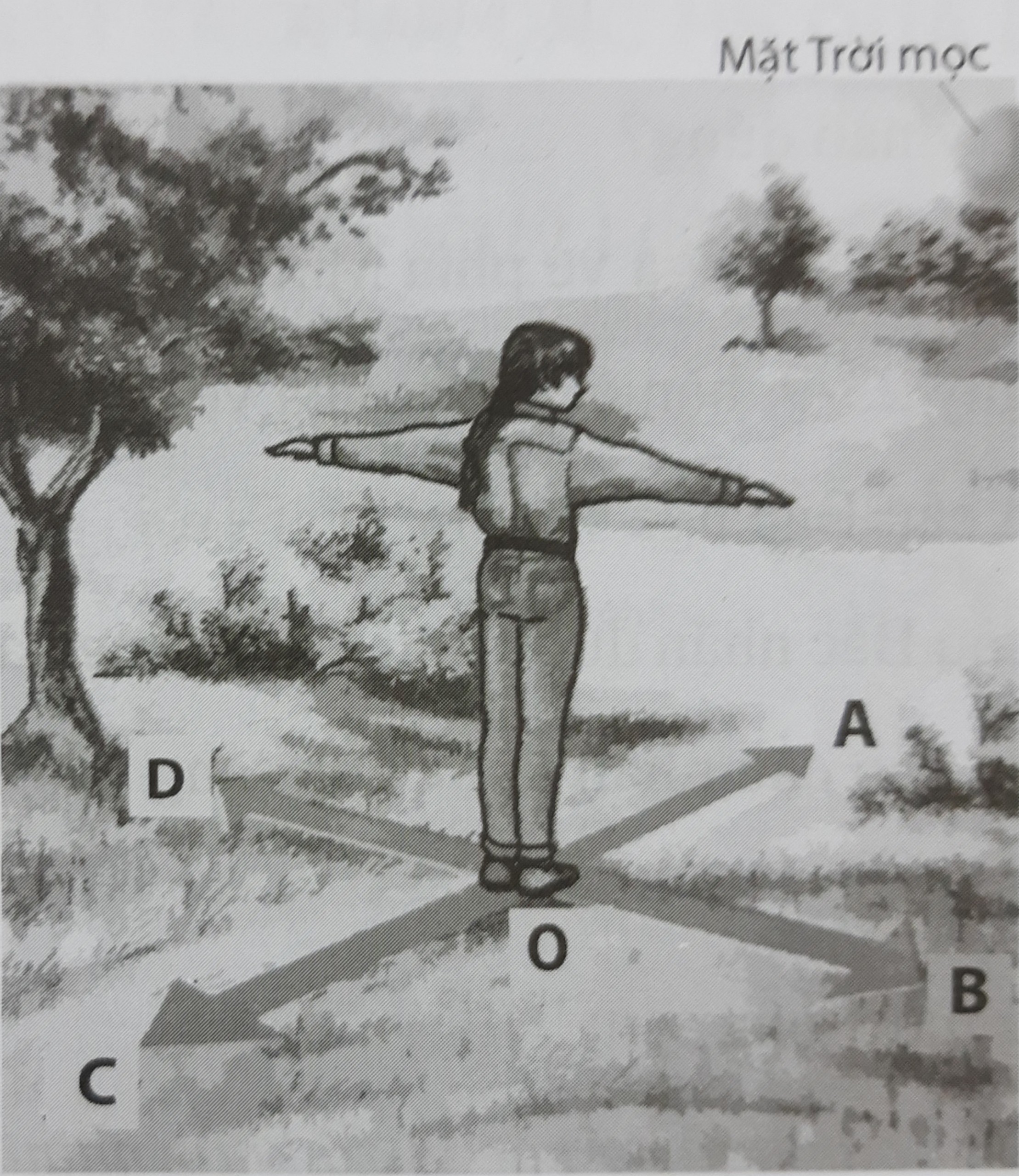 - Quan sát hình 8.1, xác định hướng Mặt Trời mọc trước mặt (hướng đông) là O đến A.