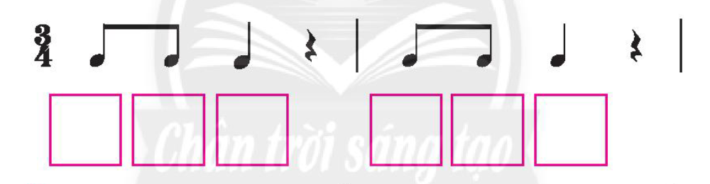 Dán ký hiệu nốt nhạc bàn tay vào ô trống sau đó đọc nhạc theo mẫu tiết tấu