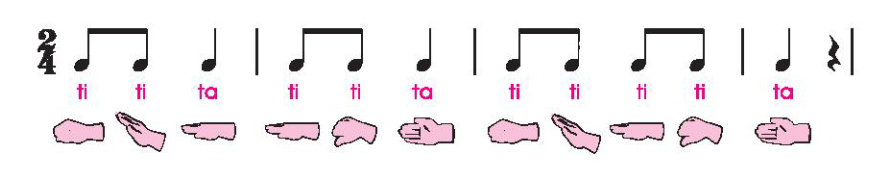 Đọc tiết tấu sau đó đọc nốt nhạc theo ký hiệu bàn tay, đọc đúng cao độ nếu có thể