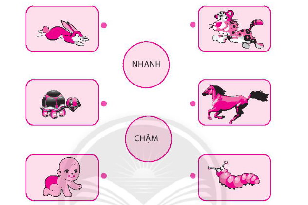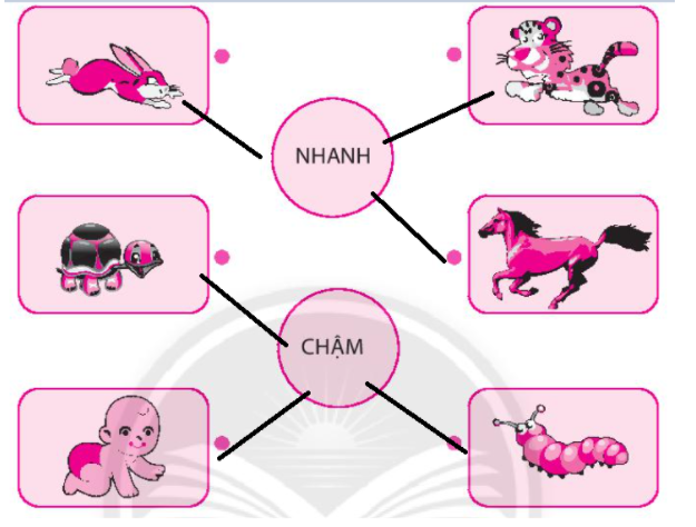 Em hãy nối các hoạt động thể hiện sự nhanh - chậm trong các nhóm hình sau vào ô chữ thích hợp.